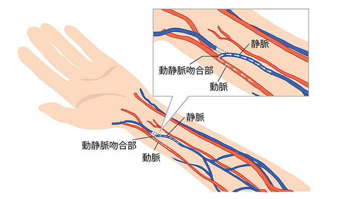 ご自身の血管を使う方法と、人工血管を用いる方法があります。患者様の血管の状況を検査で調べてから、どちらの方法が適しているかを決定します。